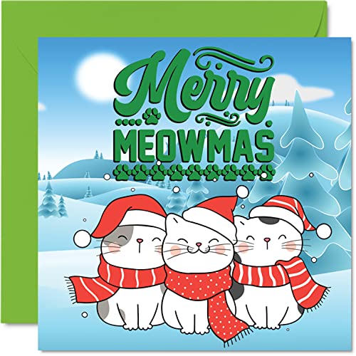 Julkort med katt för kvinnor och män – festlig kattdjur jul – julkort till hela familjen syster bror kusin farbror moster, 145 mm x 145 mm enkelt husdjur jul gratulationskort present