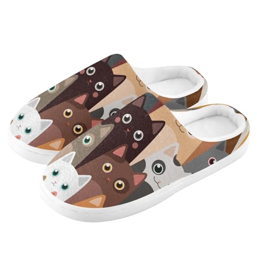 Ksajwzf Katter tecknade tofflor för kvinnor män, kattdjur damtofflor inomhus toffel strumpor husskor sovrum resesko, mång, 10/11 UK