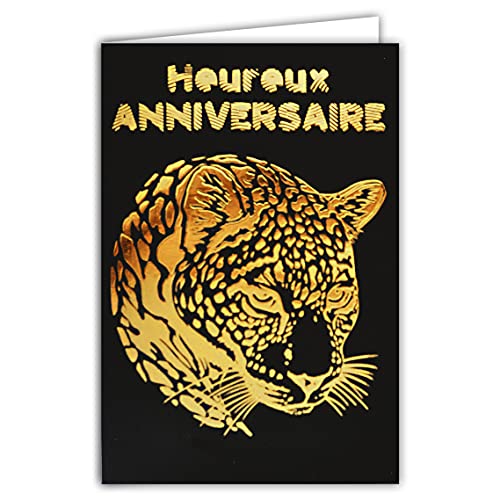 Afie 69-7021 födelsedagskort för kattdjur leopard panter med förgyllning format 12 x 17,5 cm + vitt kuvert