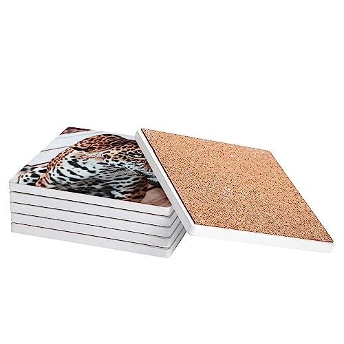 Keramisk glasunderlägg - leopard sittande öron rädd vacker blick vilda djur kattdjur - set med 6 (100 x 100 mm)