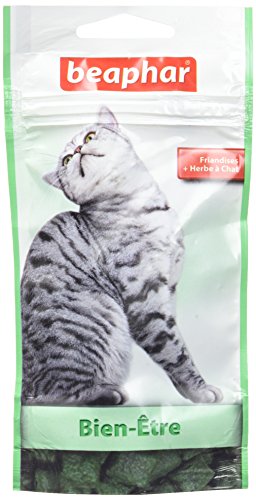 BEAPHAR Kattgräs välmående godis - kosttillskott berikat med vitaminer och mineraler - främjar tarmvälbefinnandet - återförslutningsbar påse på 35 g