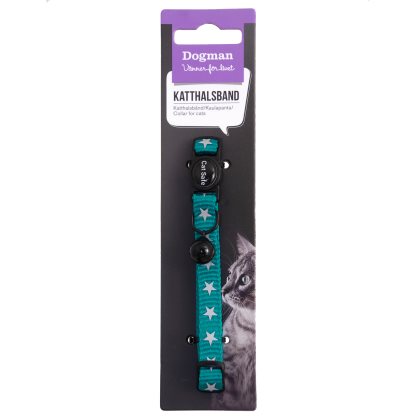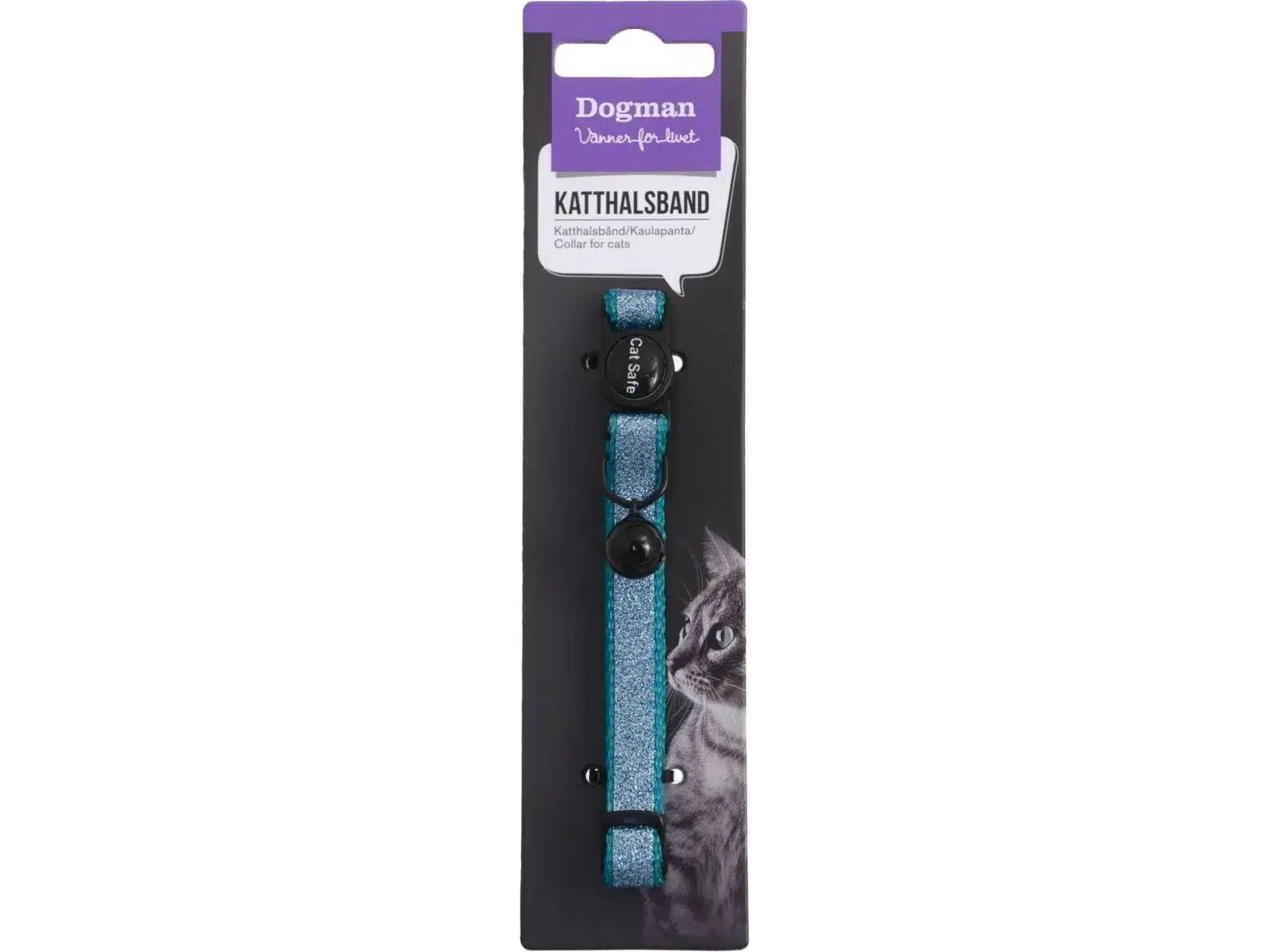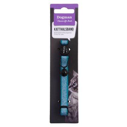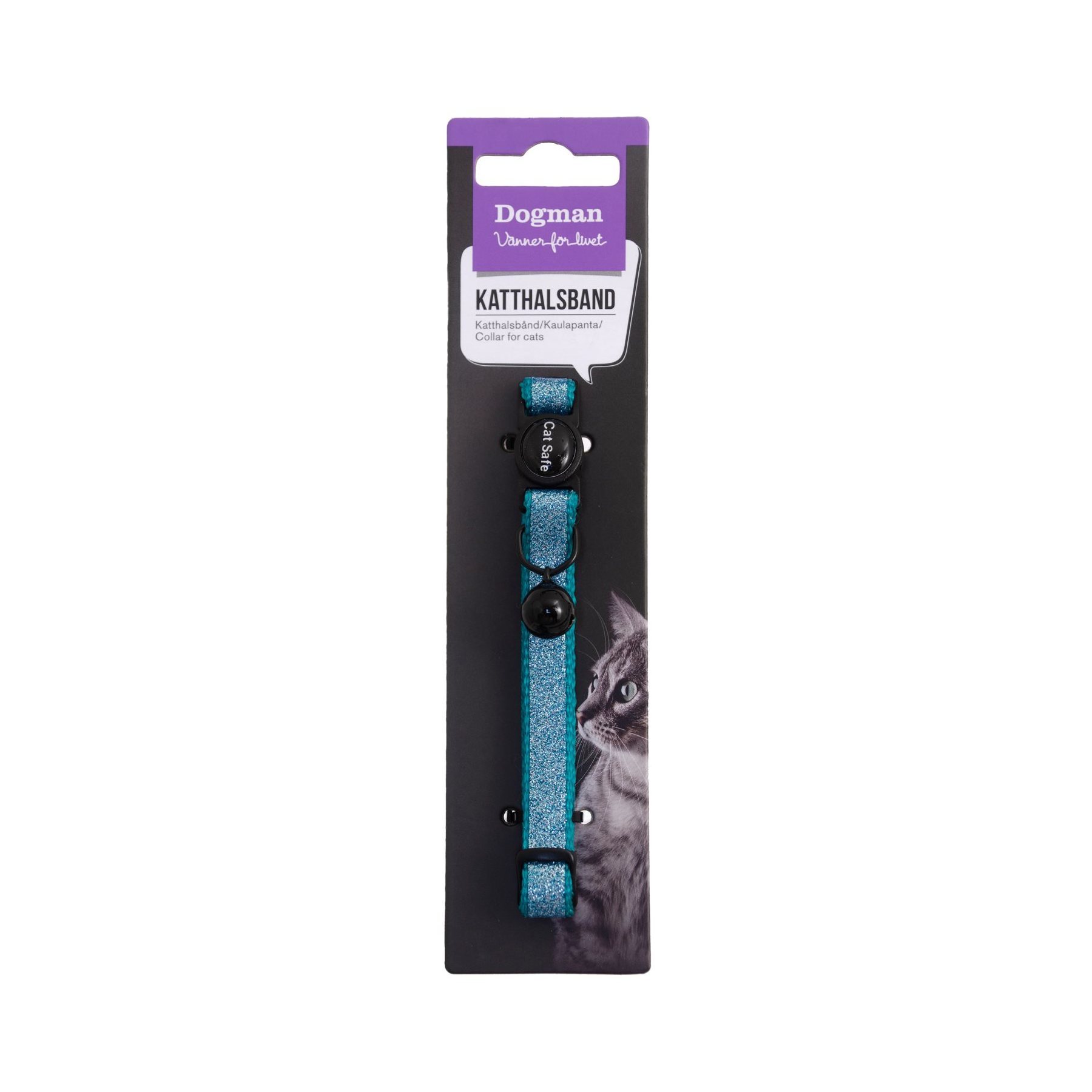 Dogman Reflekterande katthalsband med säkerhetslås och bjällra Turkos 10mmx20-30cm