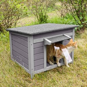 Uppvärmt Katthus Utomhus På Vintern, Extremt Isolerat Och Väderbeständigt, Upphöjt Skydd För Förvildade Katter Med Vattentäta Takfönster Och Flyktdörr För Herrelösa Katter Utomhus L(65 * 42 * 30cm)