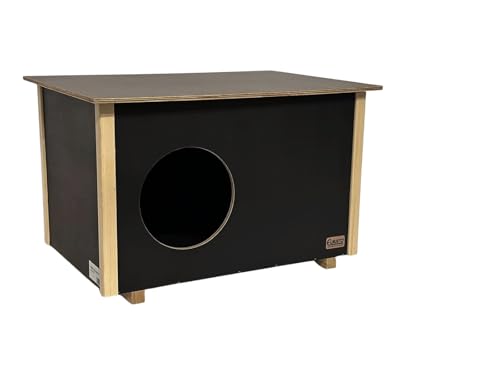 QLS Katthus 56 x 47 cm, kattkoja, grotta, utomhus för utomhusbruk, vintersäker, isolerat trä, gömställe, säkerhet, komfort