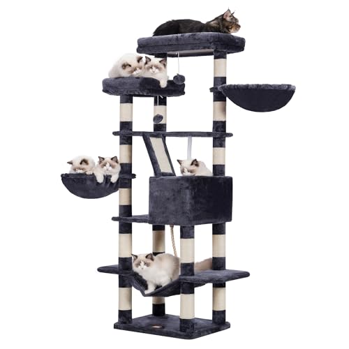 Heybly Katträd 68 Tums Kattorn Med Flera Nivåer För Inomhuskatter 2 Breddade Plyschpinnar Kattkoja Med Skraplåda, Rök grå HCT025G