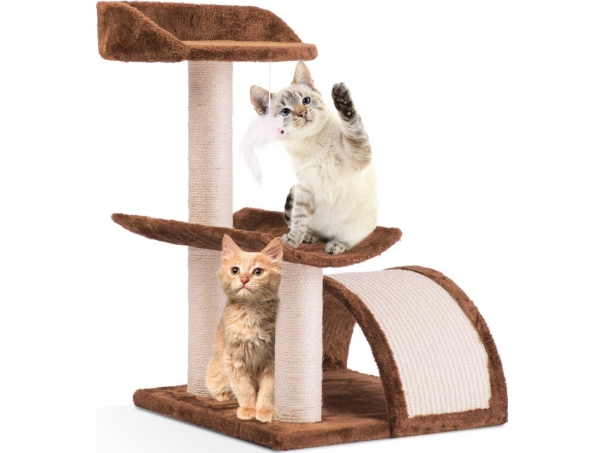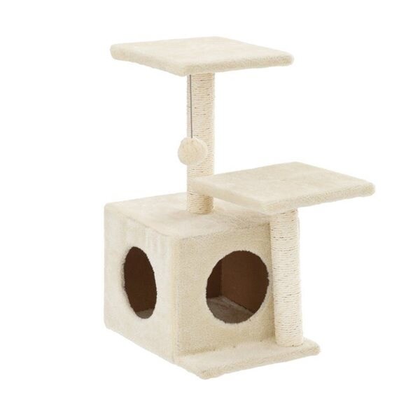 Kattkoja med platå, höjd 57 cm, tre nivåer, sisaldetaljer och leksak