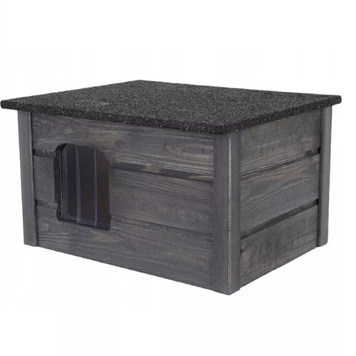 QLS Katthus 56 x 47 cm, kattkoja, grotta, utomhus för utomhusbruk, vintersäker, isolerat trä, gömställe, säkerhet, komfort