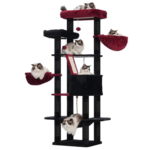 Heybly Katträd 68 Tums Kattorn Med Flera Nivåer För Inomhuskatter 2 Breddade Plyschpinnar Kattkoja Med Skraplåda, Mörkröd HCT025BR