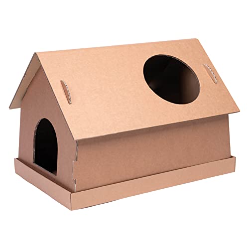 smiley pack Katthus, 58 x 43 x 41 cm, kattgrotta hållbar och miljövänlig, katthus av kartong, kattlekstuga, kattkoja, wellpapp, stabil, lätt att ställa in