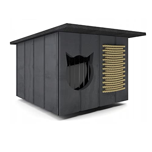 Katthus, kattkoja, kattgrotta för utomhusbruk, vintersäker, isolerad, väderbeständig, uppvärmd träkartong (Tik #E08577)