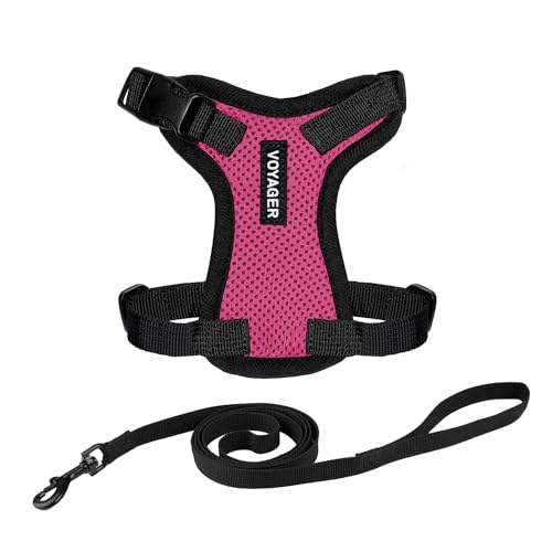 Voyager lås- och justerbar kattsele, med insteg och Kattkoppel, komboset med neoprenhandtag, 1,5 m, stöder små, medelstora och stora kattraser, fuchsia/svart kant, XXXS