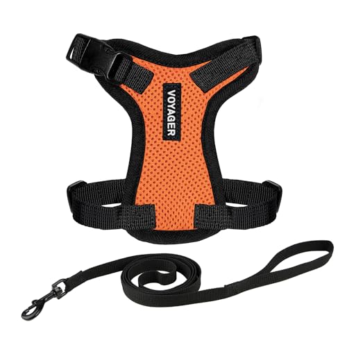 Voyager lås- och justerbar kattsele, med insteg och Kattkoppel, komboset med neoprenhandtag, 1,5 m, stöder små, medelstora och stora kattraser, orange/svart kant, XXS