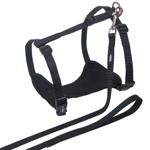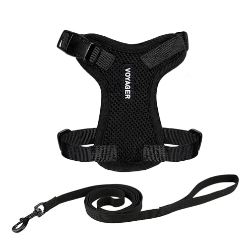 Voyager lås- och justerbar kattsele, med insteg och Kattkoppel, komboset med neoprenhandtag, 1,5 m, stöder små, medelstora och stora kattraser, svart, XXS