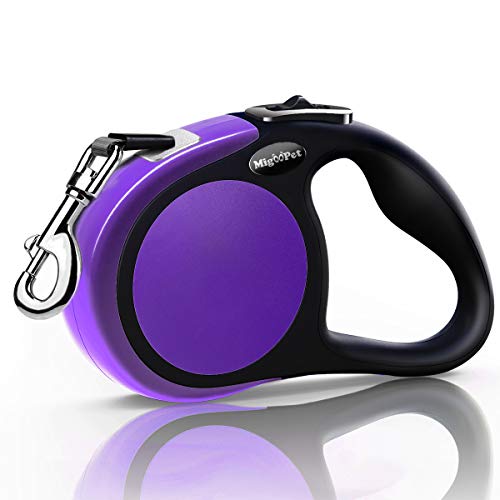MigooPet Indragbart hundkoppel kattkoppel – 15 fot hundpromenadkoppel – hållbart utdragbart koppel för små medelstora rashundar upp till 20 kg, uppgraderat låssystem, halkfritt gummigrepp, trasselfritt husdjurskoppel