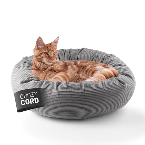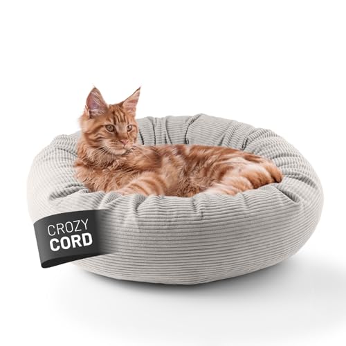 Lumaland Komfort kattsäng, manchester, Ø 60 cm | Kattgrotta halkfri botten | Katttillbehör med mjuk fyllning och manchesteröverdrag – alla delar tvättbara | kattkorg med dragkedja och 15 cm hög kant