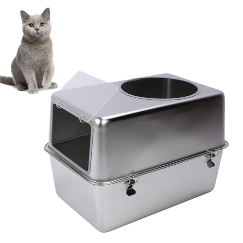BAOFUYA Kattlåda i Rostfritt Stål, Inneslutna Stora Toppmöten Katter Toalett med Antispilllock för Stora Kattkatter