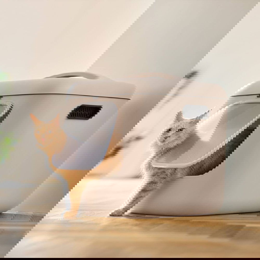 Stängd kattlåda XL, beige/svart, anti-läckage