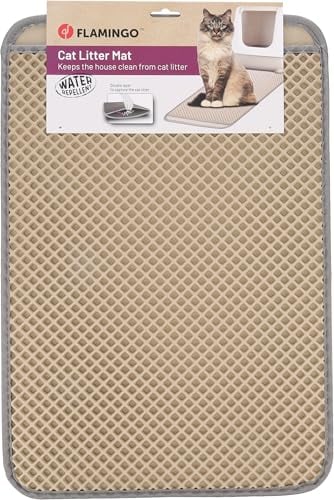 Flamingo Matz kattlådematta – beige, 61 x 41 x 1,3 cm, halkfri och hållbar, perfekt för Maine Coon, brittiskt korthår, ragdoll, norsk skogskatt etc.