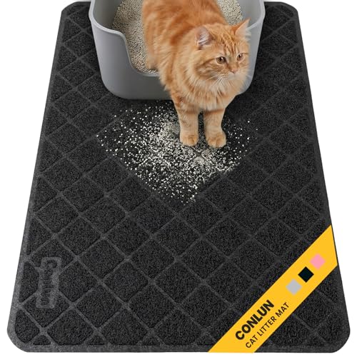 Conlun matta kattsandsmatta 119 x 89 cm kattlådematta, rutnät strökontroll design kattlådeunderlägg, vattentätt urinbeständigt material, lätt att rengöra (svart)