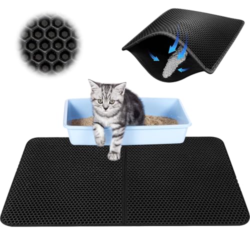 Magrimaxio Kattlådematta, kattsandsmatta, vattentät dubbel kattmatta med bikakedesign, underlag för kattlåda, 60 x 40 cm, enkel att rengöra