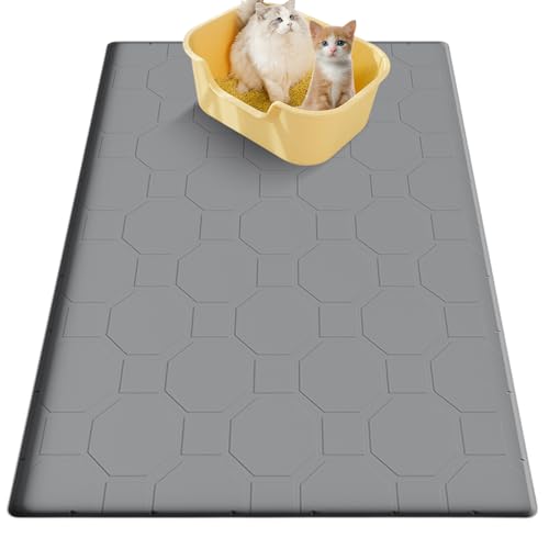 Stor kattlådematta 80 x 56 cm tillverkad av livsmedelssäker silikon, vattentät kattsandsmatta med halkfri undersida, urinresistent kattmatta för golv – lätt att rengöra och hållbar (grå)