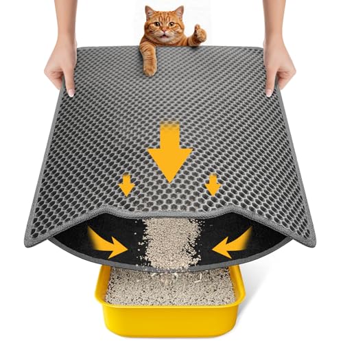 Kattlådematta 90 x 60 cm XXL kattsandsmatta, EVA dubbla lager bikakemönstrad kattmatta kattlåda, vattentätt underlag, kattlåda, kattsandsmatta, grå