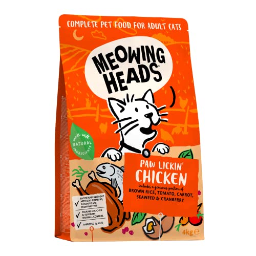 Meowing Heads Paw Lickin' kycklingtorrfoder för katter, 100% naturlig gourmet kattmat med kyckling och fisk, diet kattmat med spannmålsfritt recept för enkel matsmältning, 4 kg