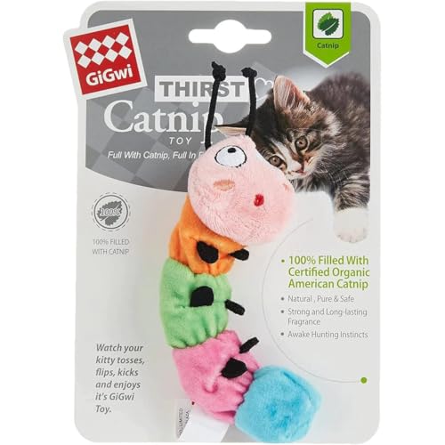 GiGwi Interaktiv kattleksak 100% ekologisk kattmynta katapillär leksak för katter och kattungar, för inomhus- och utomhuskatter – flerfärgad
