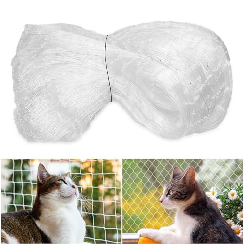 NieKilig Trådförstärkt Kattnät för Balkonger, 6x3m Balkongnät för Katter, Fönsterkatt utan Borrning för Balkonger, Uteplatser, Fönster, Takfönster, Dörrar, Staket