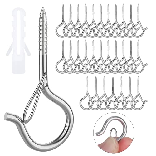 MOGADEE® 30 stycken skruvkrokar i rostfritt stål, krokar för skruvning, takkrok, tung belastning med skruvar, skruvkrok med säkring, krokskruvar för upphängning växtkorgar, juldekoration kattnät