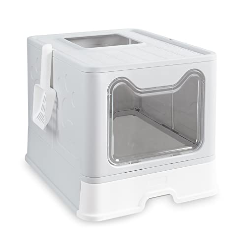 BingoPaw kattlåda med tak, XXL, kattoalett, hopfällbar stängd kattlåda med lock, låda och kattsandsspade