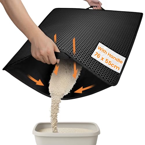 Conlun kattsandsmatta med handtag, XXL 76x55cm dubbelskiktsdesign urinsäker & halkfri, bikakestruktur fångar upp skräp, lätt att rengöra (svart)