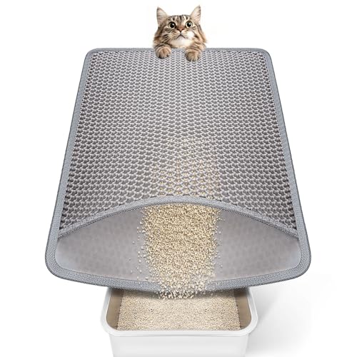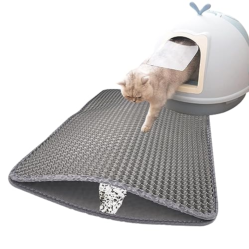 Ycozy Kattmatta, 75 x 55 cm Stor Kattlåda Matta, Vattentät Dubbel & Bikakedesign Kattsandsmatta, Lätt att Rengöra för ströbricka Grå