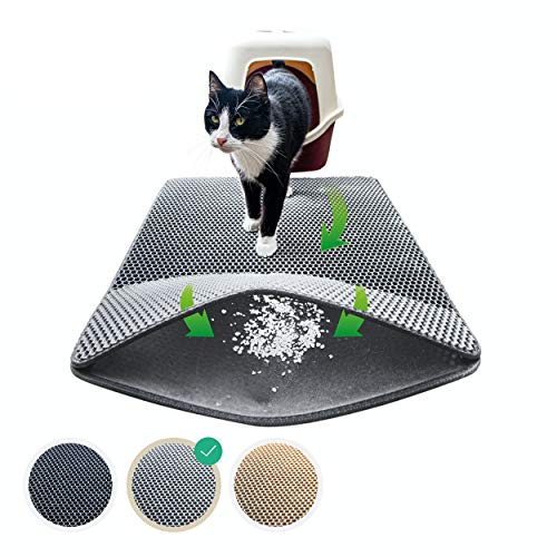 lionto Kattsandsmatta för kattlåda med halkfri yta, 61x38x1,3 cm, vattentät och lätt att rengöra, effektivt fångar kattsand med bikakemönster, grå