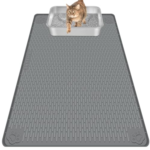 Bartuke Kattlåda, överdimensionerad kattsandsmatta 101 x 71 cm silikonmatta för spridning, mild för katttassar, lätt att rengöra (mörkgrå)