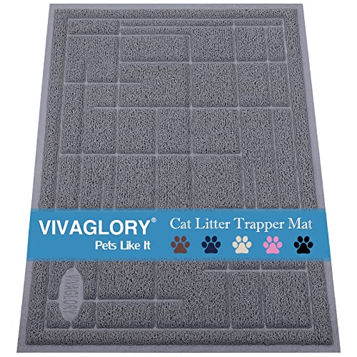 VIVAGLORY Kattsandsmatta styrplatta kattbricka matta, lätt att rengöra röra fri vattentät anti-spårning, lerig kattlåda fångare för golv och inomhus, 90 cm x 60 cm, grå