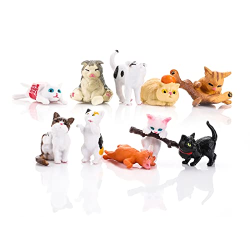 cobee söta kattfigurer, 10 delar realistiska mini katt kattunge figurer tårtdekoration miniatyr katt djur leksaks set kattprydnad för hem trädgård dekor festgåva