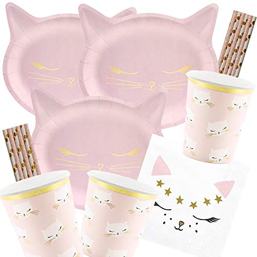 Partydeco/spielum 56-delat kalaspaket katt - kattunge - tallrik kopp servetter sugrör för 12 barn