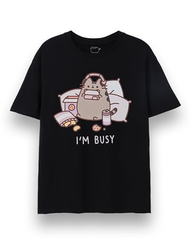 Pusheen T-shirt för män | Vuxna I'm Busy kortärmad grafisk t-shirt i svart | katt kattunge mellanmål drycker spel avslappnad nyhet kortärmad roliga kläder, Jag är upptagen, 3XL