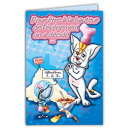 Maxicha-003 Maxi stort kort Joyeux födelsedag rolig katt kattunge kök baka kök fisk akvarium samling Charlestown illustration teckning