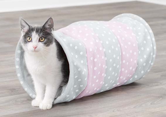 Trixie Kattunnel fleece ø 25x50 cm - Grå/rosa
