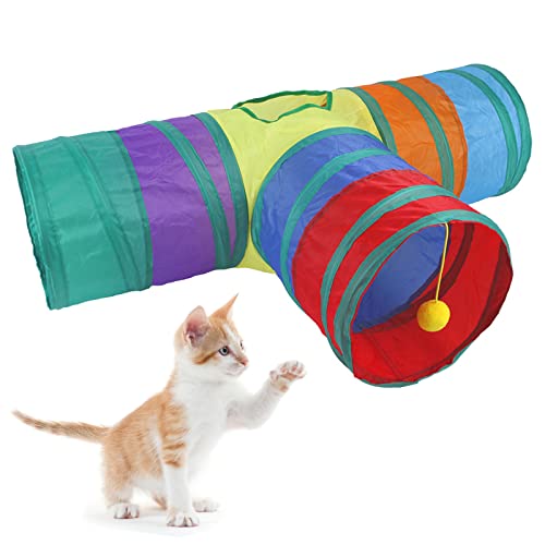 Vikbar kattunnel, litet djur lektunnel färg kattunnel med rolig boll och 1 kikhål, för katter, hundar, hamstrar, kanin (3 vägar)