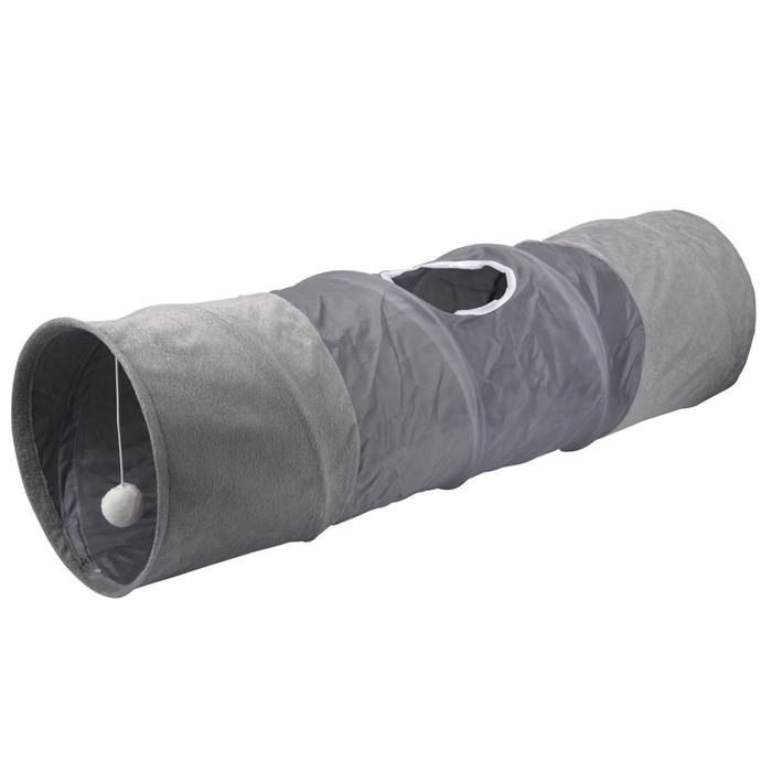 Nobleza 3-vägs Kattunnlar, Hopfällbar Kattunnel Med 1 hål och Hängande Boll, Interaktiva Kattleksaker, Vikbar Katttunnel för Katter, Kanin, Marsvin, 80 × 30 cm, Grå