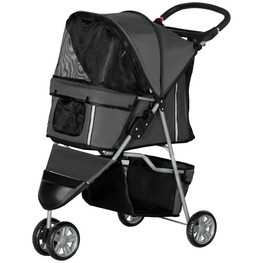 PawHut hundvagn hundvagn kattvagn husdjursvagn med 3 hjul vikbar hund katt Oxford grå + svart 109,5 x 57,5 x 106,5 cm