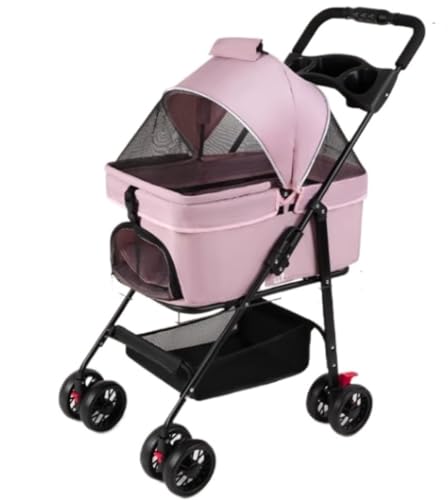 Hundvagn Husdjursvagn Hundar Katt Hopfällbar Husdjursvagn Hundvagnar Avtagbar Kattvagn Med Förvaringskorg Och Mugghållare För Små Medium Hund Vagn Hund Barnvagn(Color:Rosa)