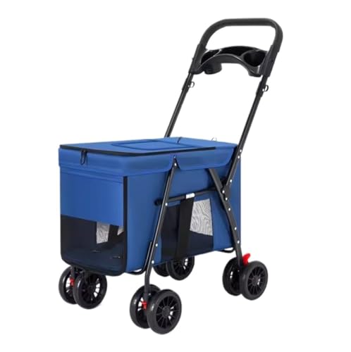 Kattvagn Hundvagn Husdjursvagn Hopfällbar Husdjursvagn Med 4 Hjul Bärbar Hundvagn Med Mugghållare Kattvagn För Medelstora Hundar Katter Husdjur Buggy Hundbarnvagn(Blue)