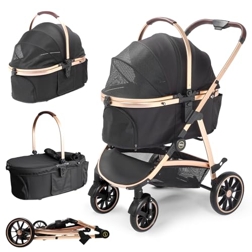 MAMIZO 4 i 1 hundvagn, hundvagn upp till 25 kg, 4 st gummihjul med stötdämpning, vikbar hundbarnvagn, hundvagn, hundvagn, hundvagn, hundvagn, hundvagn terräng, kattvagn (svart)