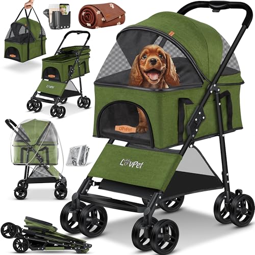 LOVPET® Hundvagn 2-i-1, både transportbur och hundvagn, vikbar, upp till 20 kg, med nätfönster och regnskydd, joggingvagn, kattvagn för små hundar och katter