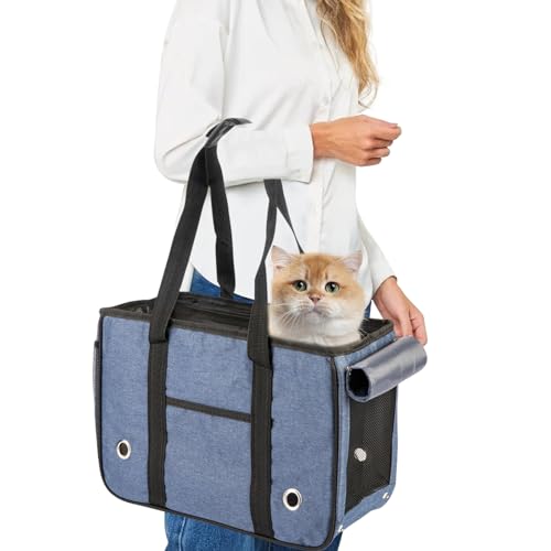 PETCUTE Bärväska för husdjur, bärbar kattväska, toppöppning, andningsbar djurväska i nät för hundar och katter, vikbar hundväska med långa axelremmar och förseglade rullgardiner