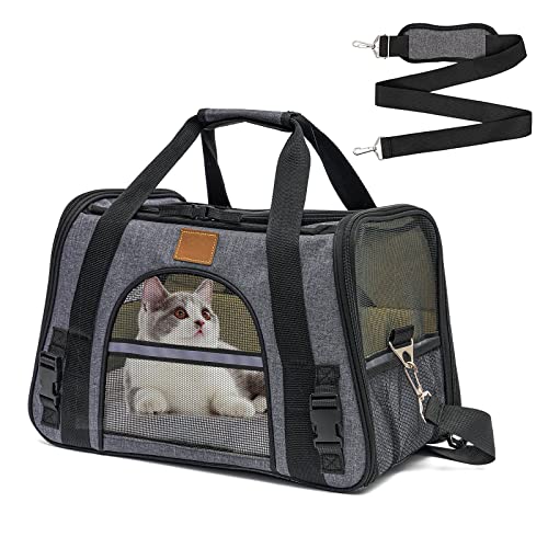 Bejibear Stor kattväska, mjuk sida, husdjursbärare för kattungar, valpar, hopfällbar liten resväska, TSA-flygbolagsgodkänd väska för under 9 kg, grå